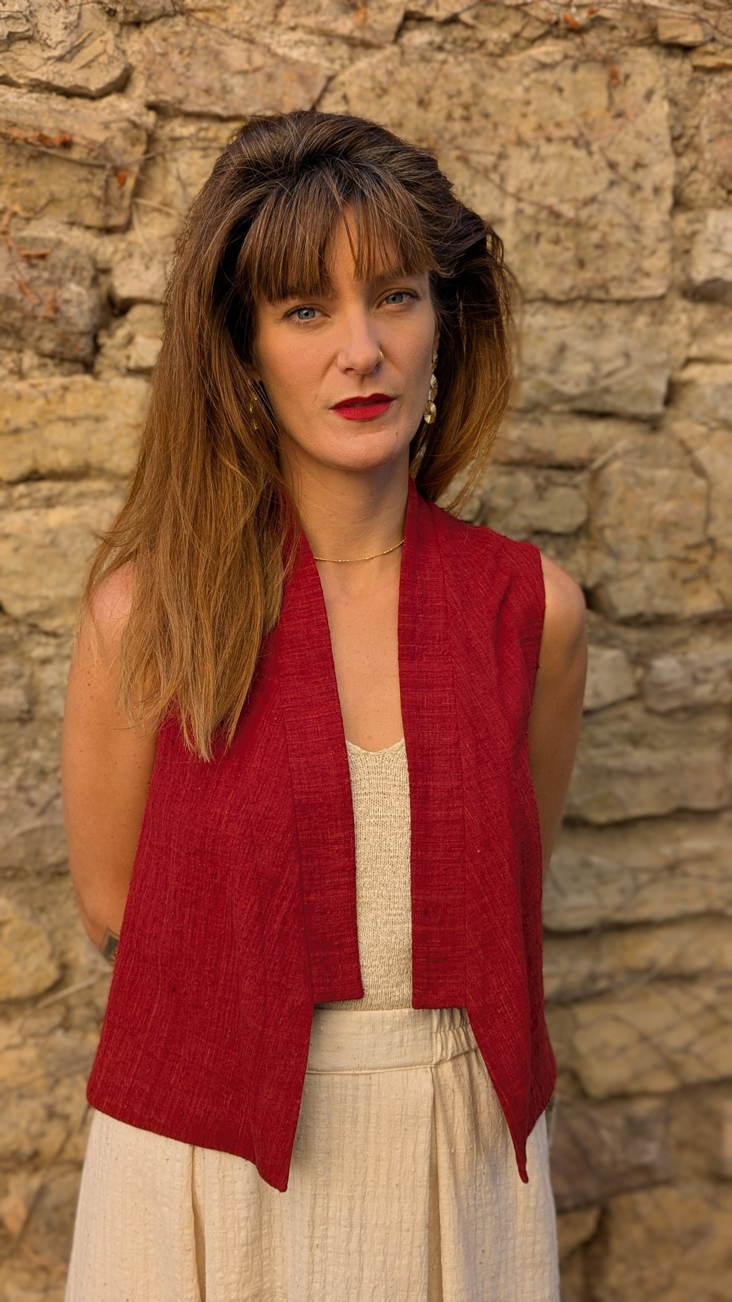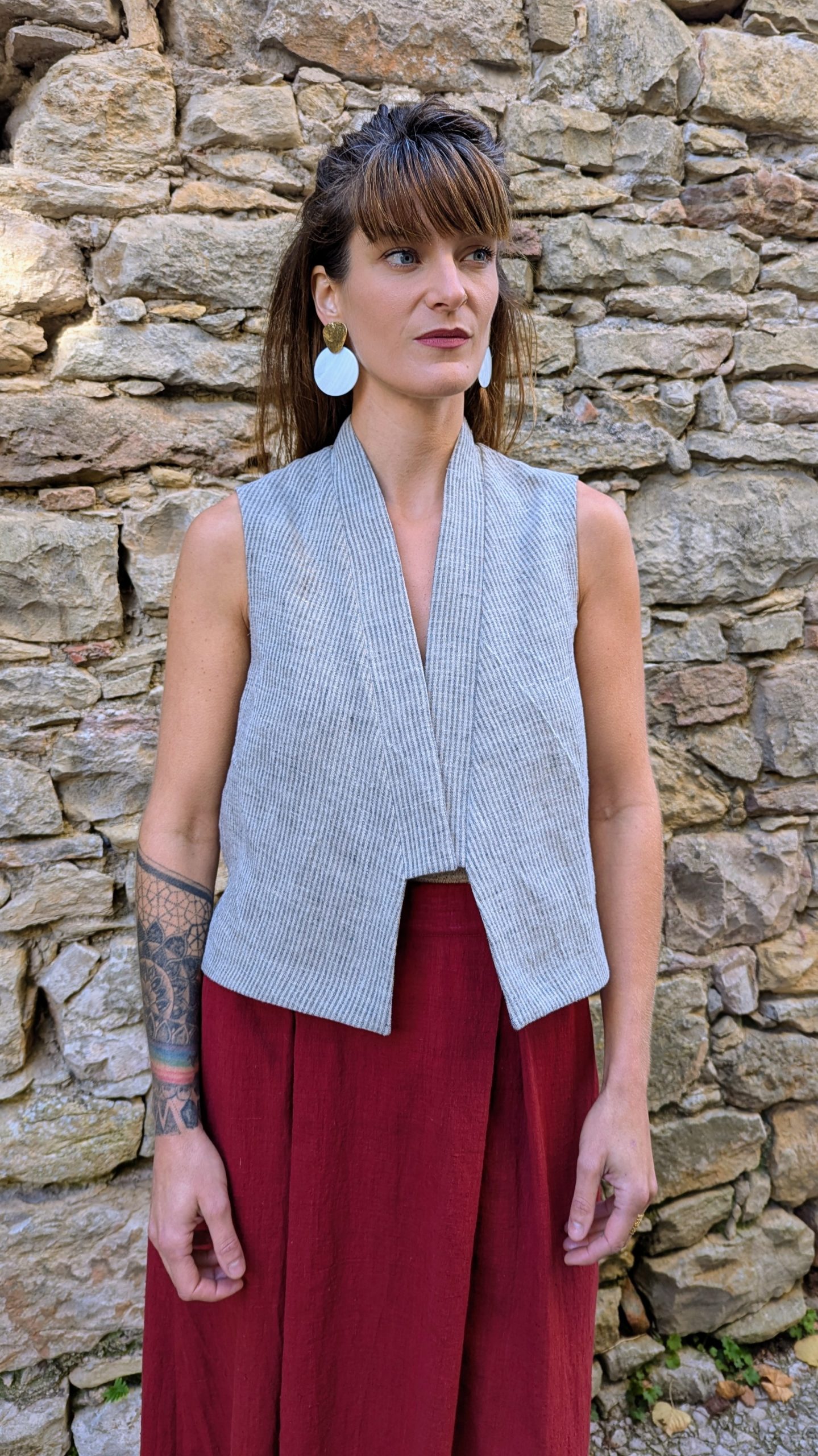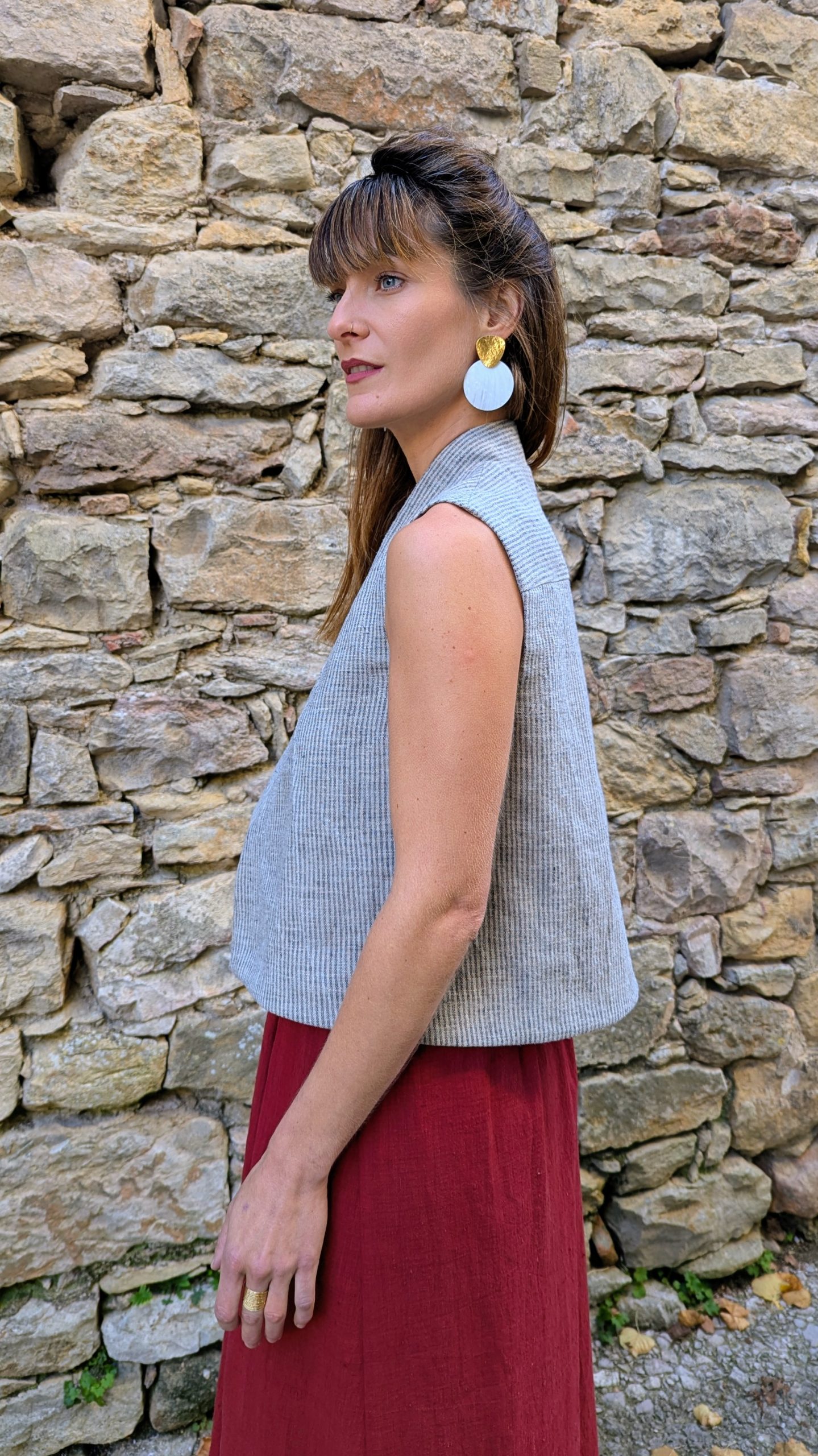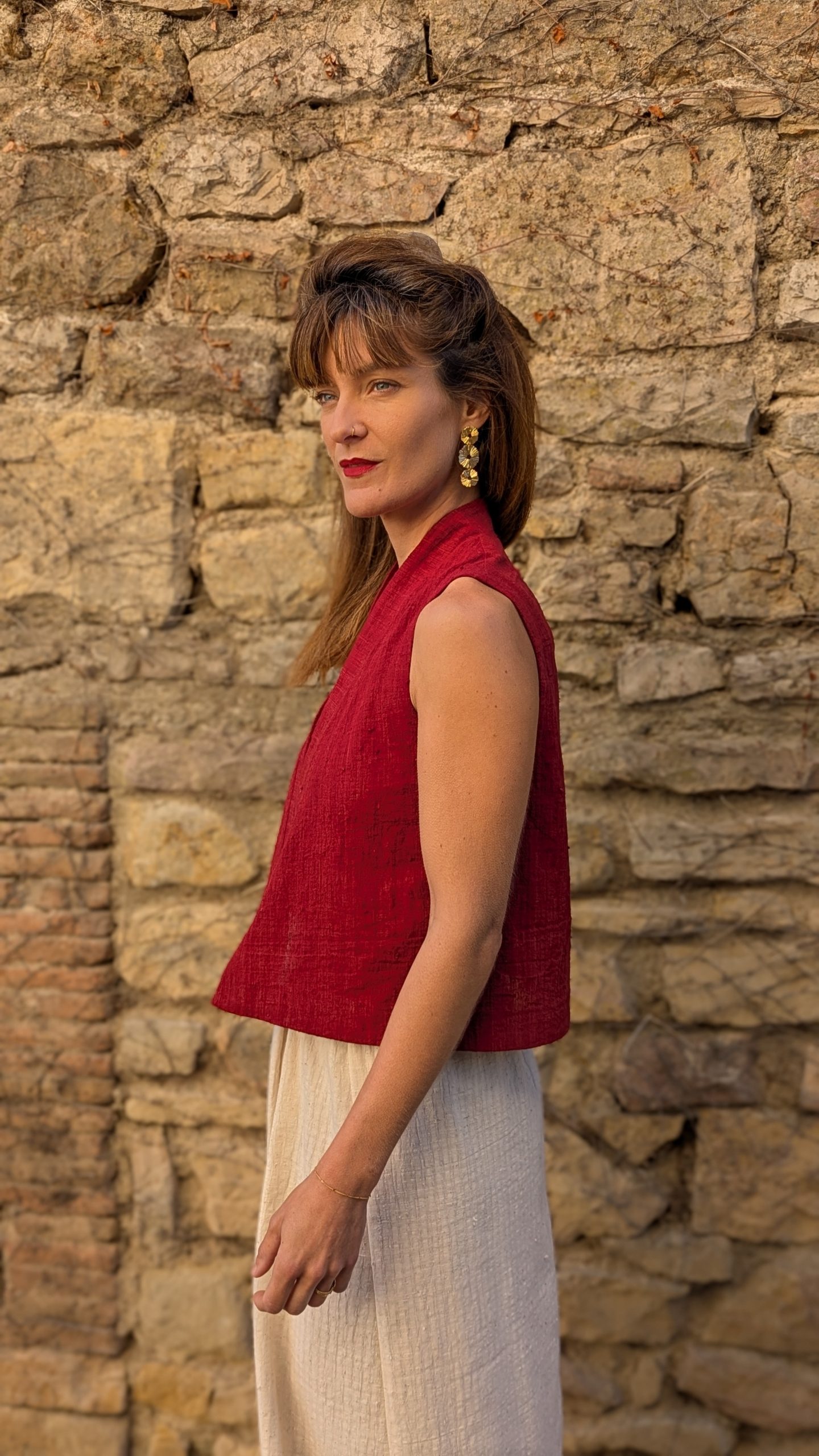Finished with a visible selvedge at the center back and topstitched detailing all around. The fabric holds a rustic charm and adds texture and depth in a handwoven cloth, that balances craftsmanship without heaviness.